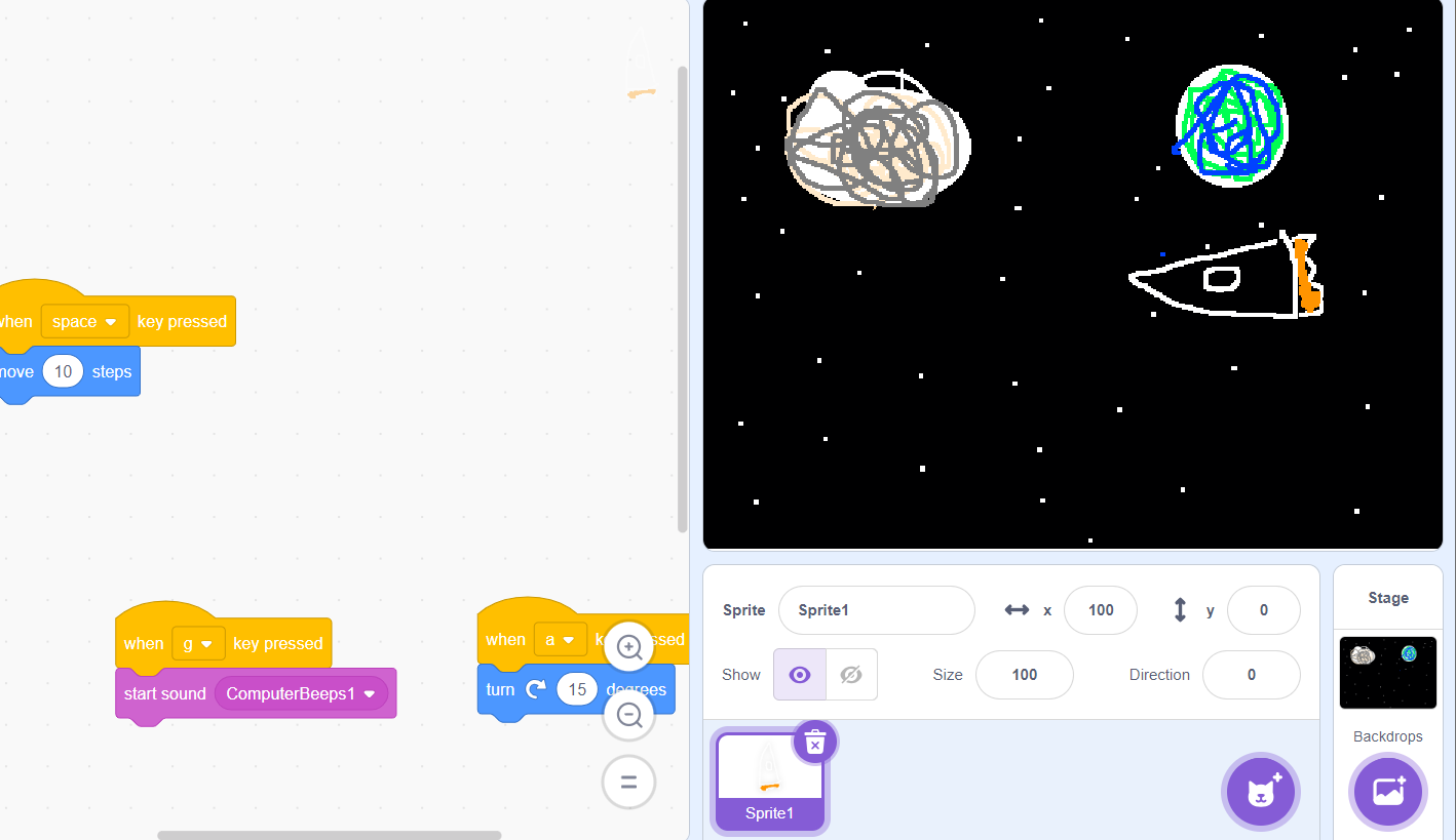 In computing we were learning to be astronauts and programme our spaceships to fly to different planets.